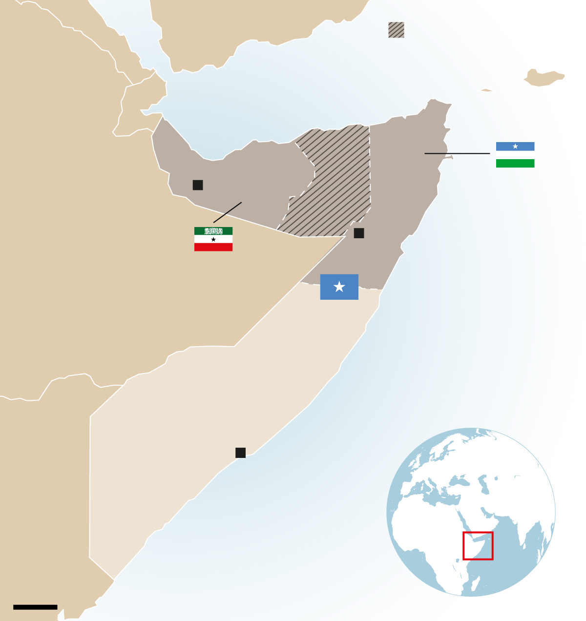 Somalilandia, que fue un protectorado británico hasta 1960, no está reconocida internacionalmente, aunque tiene Constitución, moneda y gobierno propios, e incluso un mejor desarrollo económico y mayor estabilidad política que el resto de Somalia. La región declaró su separación de Somalia, ex colonia italiana, en 1991, cuando fue derrocado el dictador Mohamed Siad Barre.