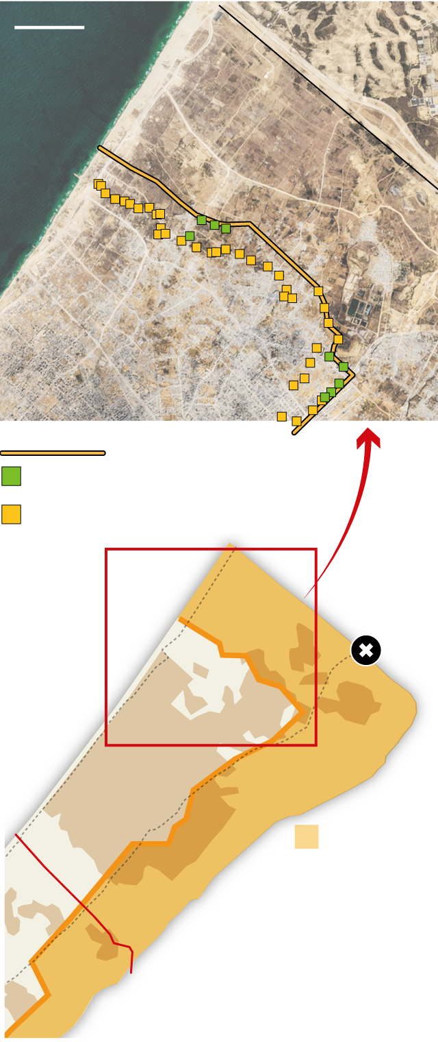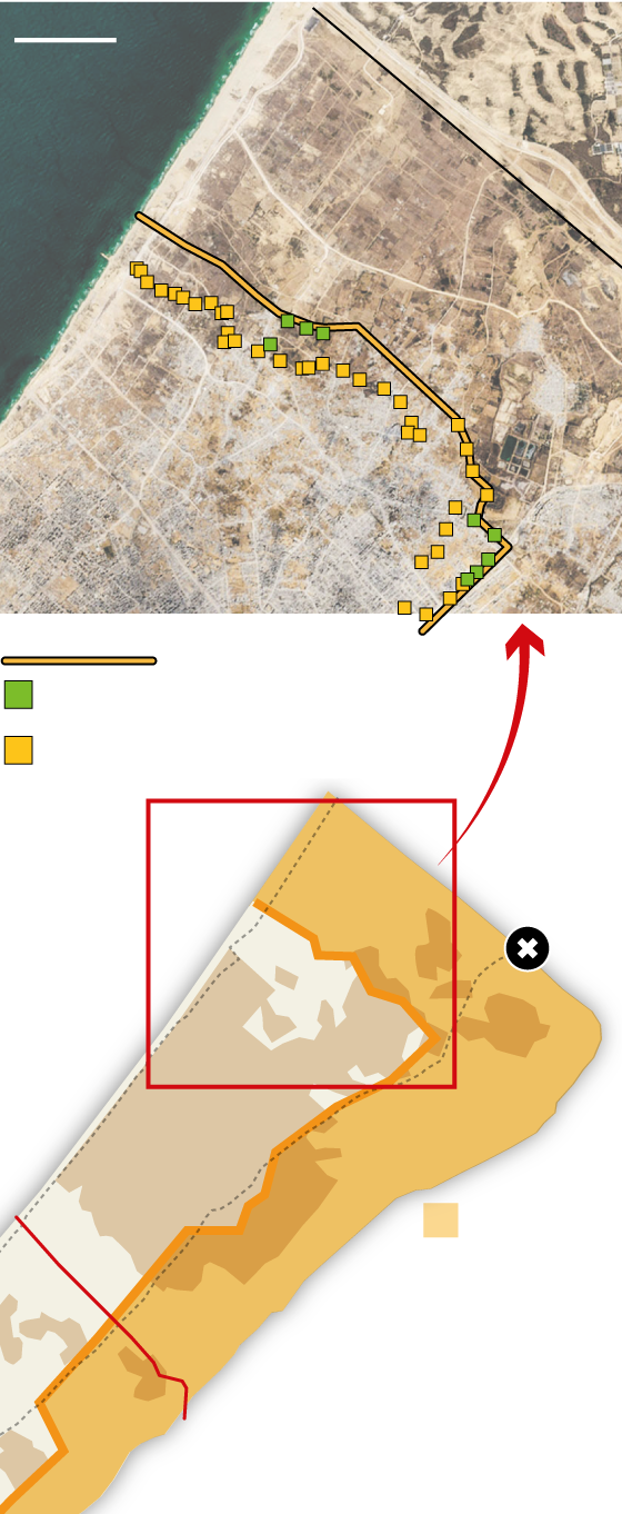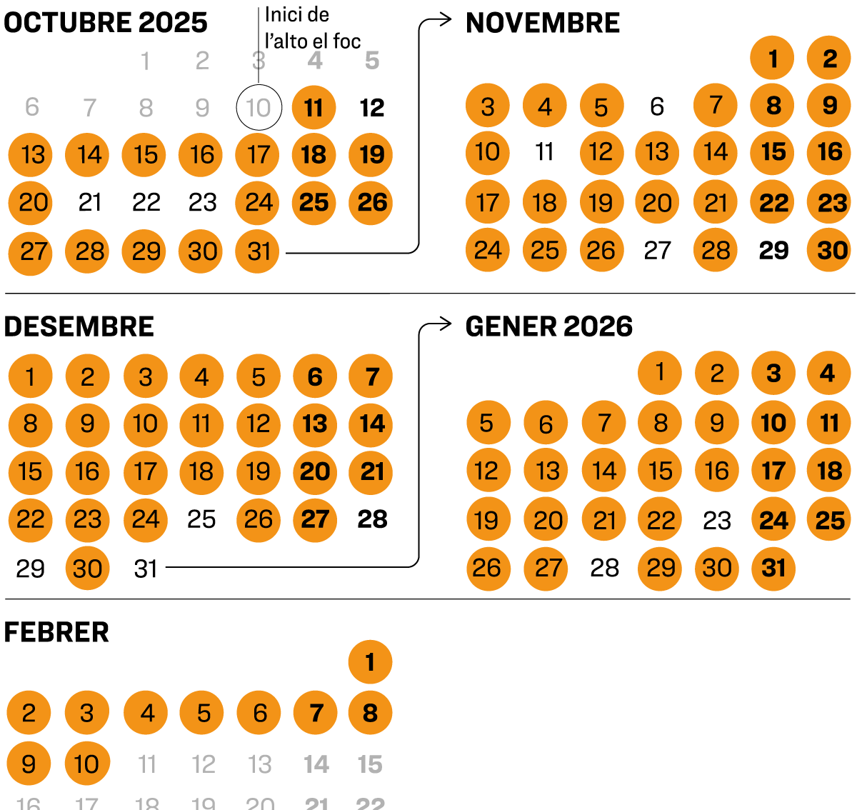 Ya sin rehenes, y habiendo avanzado en otras cuestiones como la Junta de Paz que debe gobernar Gaza, de momento Israel no ha hecho ningún movimiento. Al contrario: la línea amarilla está marcada sobre el terreno con bloques de hormigón y pilonas amarillas, y el estado hebreo no sólo no ha retrocedido, sino que incluso ha avanzado a algunas de estas pilonas Gaza adentro y ha superado en varias zonas de la Franja el límite teórico de la línea amarilla fijado en el plan de Trump.